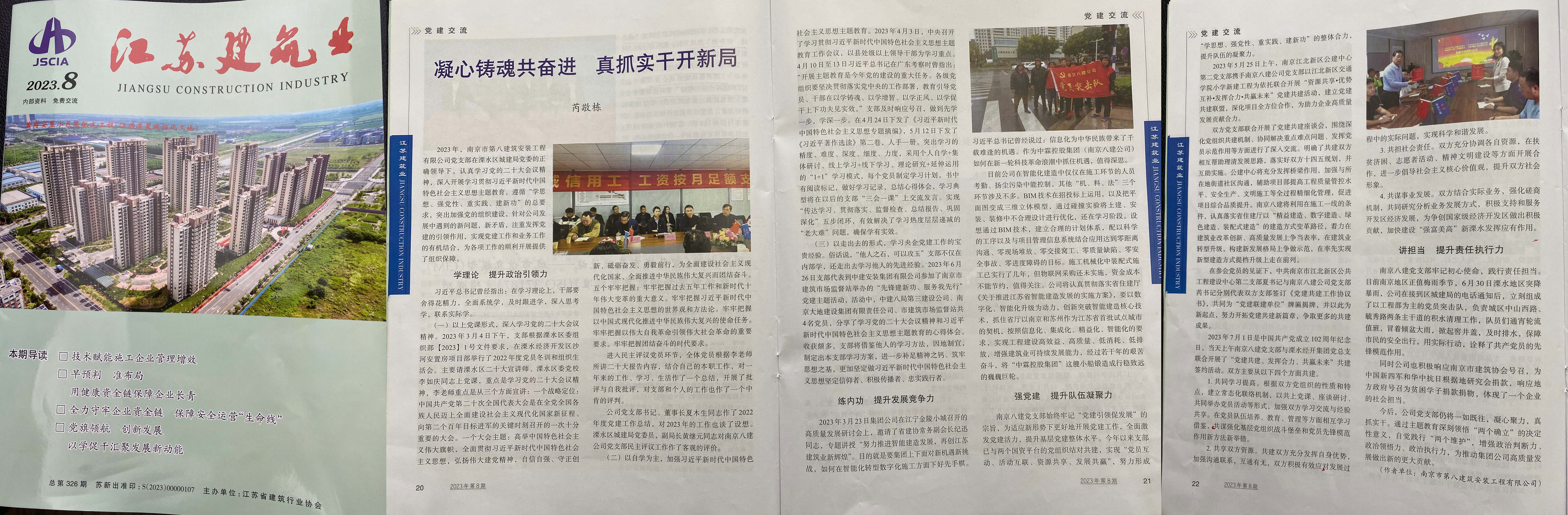 2024年6月,江蘇建筑業(yè)協(xié)會主辦的《江蘇建筑業(yè)》(2024年第6期)刊登了芮敬棟同志《南京八建黨支部:學習貫徹黨紀條例,提高質安管控能力》一文 -